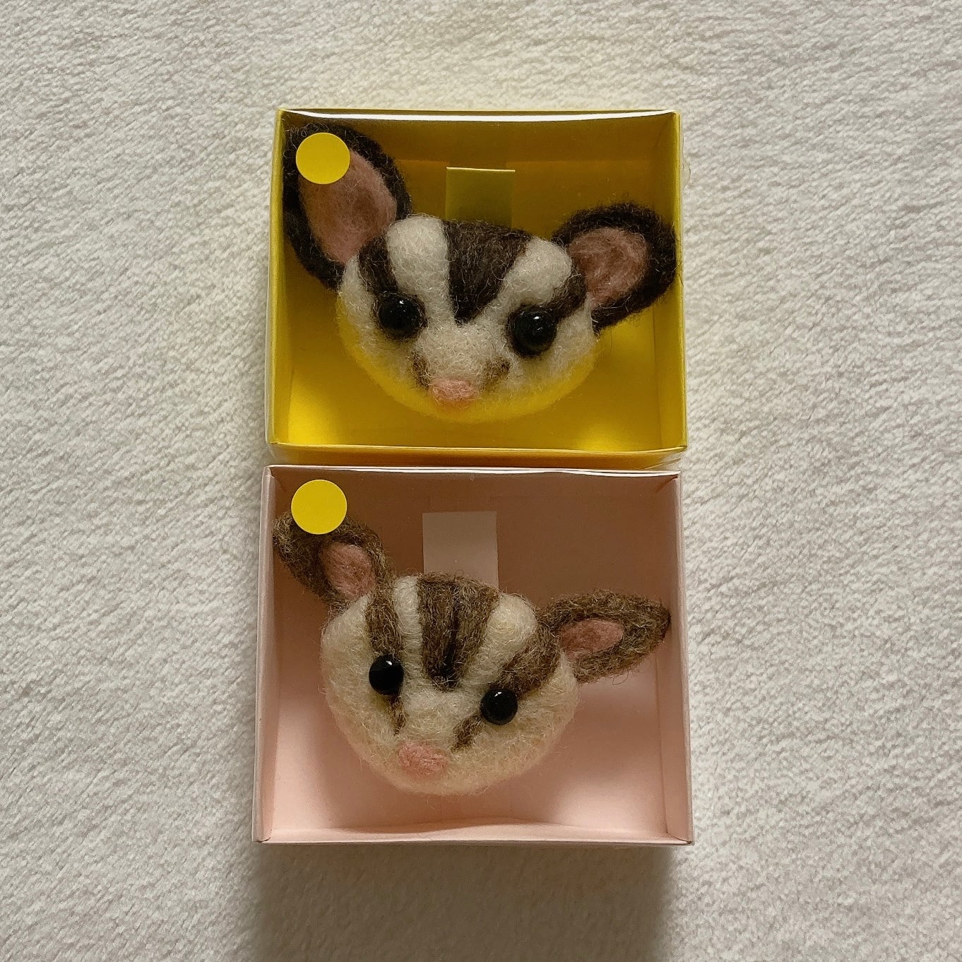 フクロモモンガのブローチです。